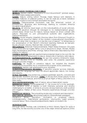 Henry David Thoreau Apuntes 12 Henry David Thoreau 1817 1862 Works Walden 1854 Resistance Studocu